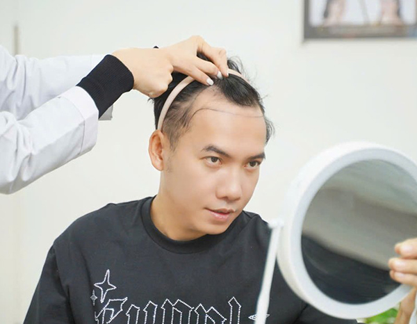 Ca sĩ Phạm Trưởng: Sau khi thăm khám, bác sĩ chỉ định mình cấy 3000FU. Phương pháp được lựa chọn là HAT. Lý do là phương pháp này ít xâm lấn, không để lại sẹo, thời gian hồi phục nhanh và mật độ tự nhiên, tính thẩm mỹ cao.